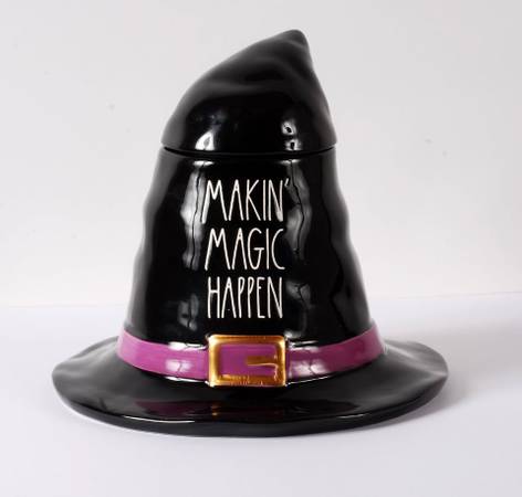Rae Dunn Makin’ Magic Happen Figural Canister New In Box Glazed ceramic construction Lid with silicone seal Imported Material: Ceramic Height: 9.5" Diameter: 10.75" Special washing: Hand washing...