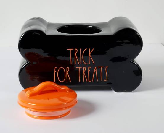 Rae Dunn “Tricks For Treats” Pet Treat Canister - 10x5.25x5.25” NIB