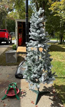 6 ft Snow covered Christmas tree.fantastic condition $25.00 6 ft reg Christmas tree $30.00 Christmas tree stand small $10.00