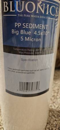 Bluonics Sediment Filters PP Sediment Big Blue 4.5 x 10" 5 Micron Brand New 9 in quantity Paid $90 Price Firm at $65 Text is faster response, thx