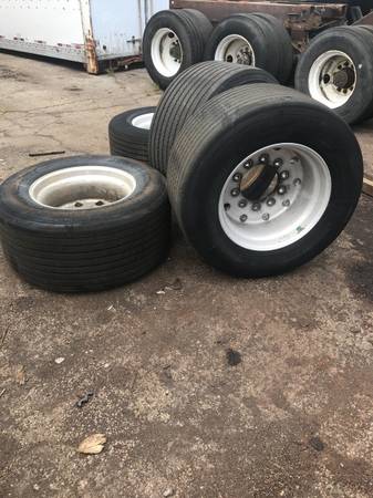 We have trailer tires for sale. 22.5 and 24.5 sized tires. Both Low Profile and 11R's. Mounted on Hub Piloted, Old Style Budd, and Open Rims. As low as $175.00 a piece. Buy 10 or more $125.00 each.