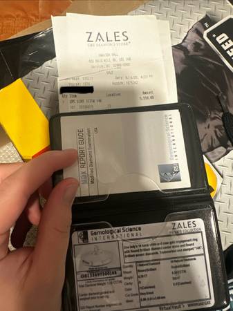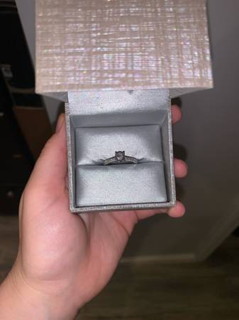 Bought from zales. Ring and engagement band included! Got a box “always and forever”engraved to keep rings in. Receipt and diamond card authentication included. Not sure of size but it’s on the smaller end. In great condition, I have a receipt for getting it cleaned as well.