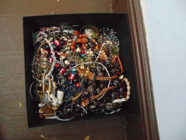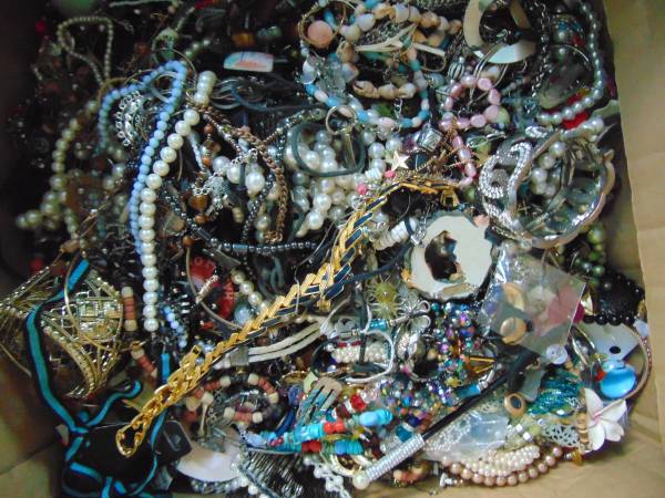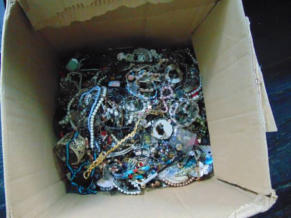 2 big heavy boxes of mixed costume jewelry. parts, vintage, newer, wearable, sellable, arts, crafts, pieces, charms etc.jewelry. very heavy. must be able to carry down stairs to car. show contact info