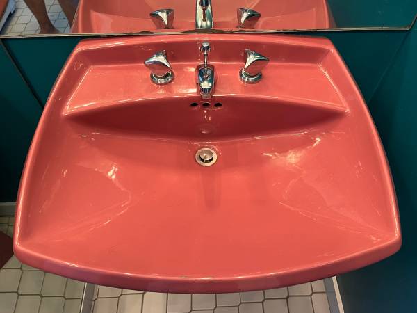 Like new, this Awesome pedestal sink might just be what you need! It is in perfect condition. The pictures look like the colors are different, but it is the lighting! The pedestal base is 26 1/2 inches tall and then added another 6 inches for the sink basin itself. The sink is 29 inches wide by 22 inches deep so 22 inches front to back. Located 5 Hope Street, Bristol, call for an appointment. Delivery within a reasonable distance from Bristol RI can be arranged.