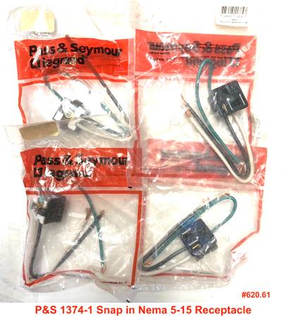 Pass & Seymour 1374-1 15A 125VAC NEMA 5-15R Plastic Snap-In Receptacle - Black New in original packaging 4) available at $1.00ea (NEW) OR ALL FOR $2.00...