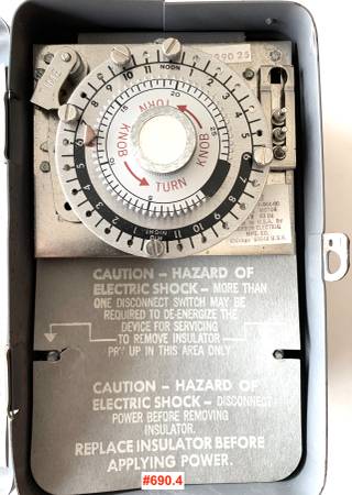 Defrost Time Clock 24 Hour 30 secs to 27.5 Min. Defrost Cycles (NEW) Dayton #6X758 24 Hour Time Control 1-12 Operations Daily 30 seconds to 27 1/2 Minute Cycles Timing Motor 120V 2 N/O 1 N/C 40 Amps...
