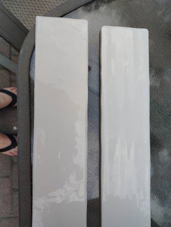 "Coconut" wall tile from Daltile. If you need more, you can buy it at Dal for double the price. Couldn't return the extra box because it was a special order. Will cover about 10 square feet. If $50...