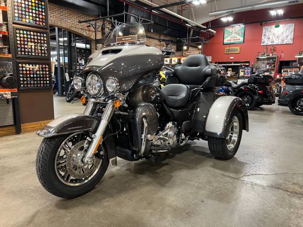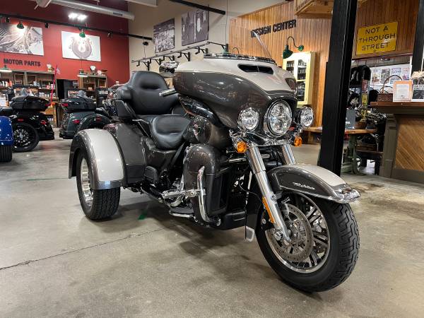 H-D Certified 2023 Harley-Davidson FLHTUTG Tri Glide Ultra in 2 Tone Gray Haze and Silver Fortune. Mint condition. Certified bikes qualify for new finance rates, new ESP pricing, 12 month powertrain warranty, 1 year HOG membership with roadside assistance. All trades welcome any make or model let us know what you have. Buy here with confidence we are a family owned and operated authorized Harley-Davidson dealership with over 37 years experience selling and servicing just Harleys, why buy anywhere else ? Russ' Ocean State Harley-Davidson is a NO FEE dealership. See our entire new bike and no excuse pre-owned inventory at oceanstatehd.com