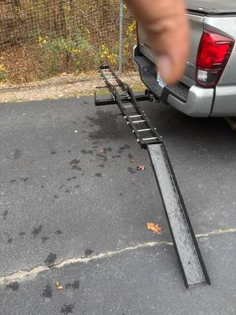 Like new Bike, Scooter, Motorcycle/Dirtbike Carrier. Fits a Trailer hitch. Has built in ramp for Bikes/Motorcycles. 400# capacity Heavy steel built. $75 Text ok
