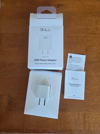 Product Name: 20W Power Adapter Product Model: CDA80 Port: USB-C Charger Input: AC100V-240V USB-C Output: DC 5V=3A/9V=2.22A/12V=1.67A Total Output Power: PD20W Material: ABS+PC new in box; 29.99