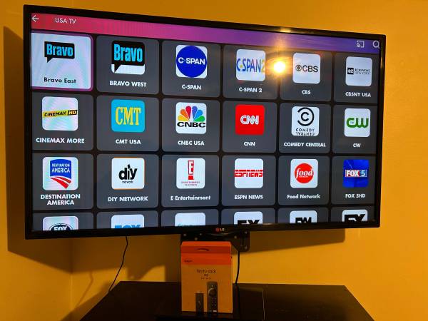 Works great no problem Not smart tv but INCLUDES All All Programmed Stick No subscription Check it out first cash only