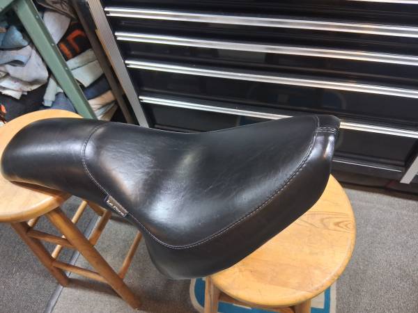 For sale, this sleek, low, and sculpted excellent condition Le Pera Silhouette seat for Harley Davidson soft tail bikes, from 2000 through 2007. Bolts right up to factory position using stock Harley hardware on all soft tails though out those years. This on was on a Fat Boy.