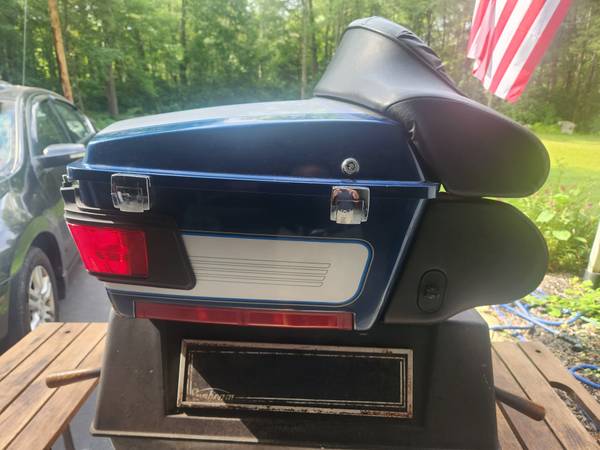 Harley Davidson King Tour Pack (o.e.m.) includes mount that fits 97-08 and luggage rack, speaker pods, latches work good, no key, came off an 04, very good condition, Pickup/Delivery..Cash or Venmo...