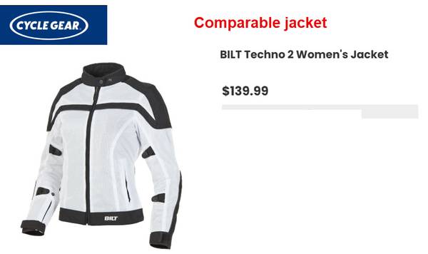 BILT men's motorcycle jacket Purchased new at approx. $140.00 Comparable jacket - BILT Techno 2 Women's Jacket Construction: • Ultra-flow Techno mesh body material • 600D Oxford reinforced panels •...