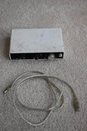At some point I coated the chassis in white Plasti-Dip; that finish is now dirty and worn and definitely not pretty, but it’s only cosmetic. All knobs, buttons, and jacks are present, and the interface powers up and connects over USB. (Please test it with your own system before buying if you’d like – sold as-is because of the cosmetic condition.)