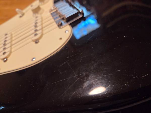 This works 100%. It does however have lots of paint chipping primarily around the neck, as well as marks from usage on the body highlighted in the pictures. I couldn't capture everything but you get the idea.