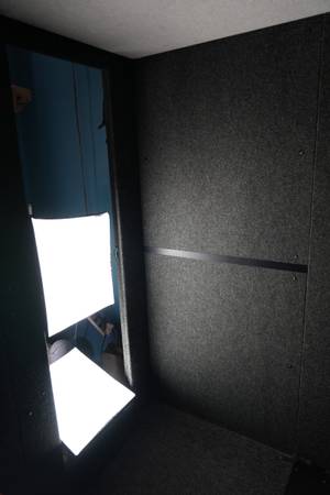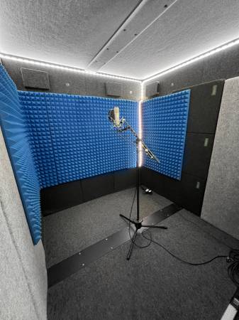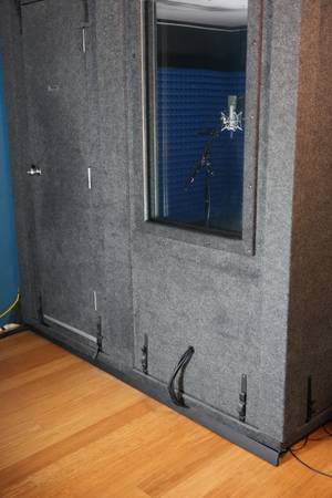 IMPORTANT NOTE: Some of the pictures show a microphone, stand, cables, blue pyramid acoustic foam, and light gray sound absorption panels. This listing is only for the Whisper Room, it does not include any of those items previously mentioned or acoustic treatment shown in some of the photos.