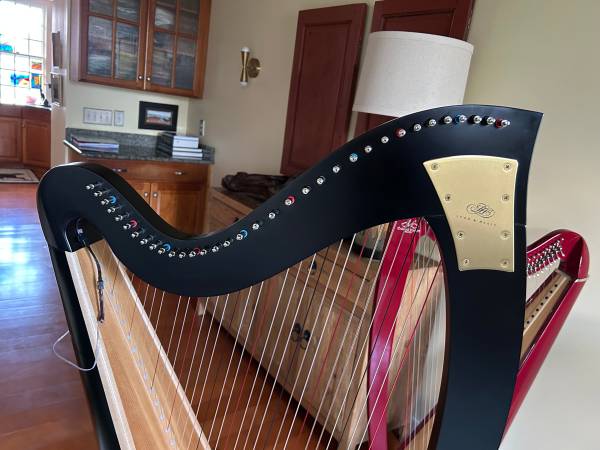 This is a 2019 Ogden, gut-string harp in great condition. The gut strings make it a perfect choice for learners whose goals include a pedal harp in the future. It also is fine for a Celtic harp lover, with a very rich, mellow sound.