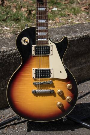 2024 Epiphone Inspired By Gibson Custom Shop 1959 Les Paul with the Gibson open book headstock, REAL mother of pearl logo and inlays, Gibson CUSTOMBUCKER pickups - a $500 set of pickups 100% stock! Pickup covers were removed, then neck cover added back. Bridge cover is in the case. Is currently $1299 new.