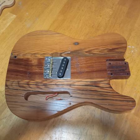 Here is a Luther built tele body...outside pc are reclaimed old wood center is rose wood...it is heavy... Comes with a generic pickup and bridge. This is routed like an Esquire..full thickness. Add.your hardware and a neck. Very unique and awesome body