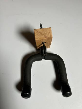 Acoustic or electricGuitar wall hanger Excellent condition screw right into a stud in your man cave and hang your guitar for display No checks, money, orders, PayPal, Venmo, Zelle or courier pick...