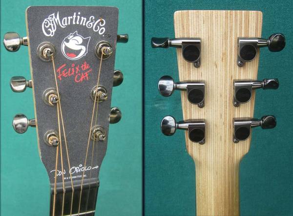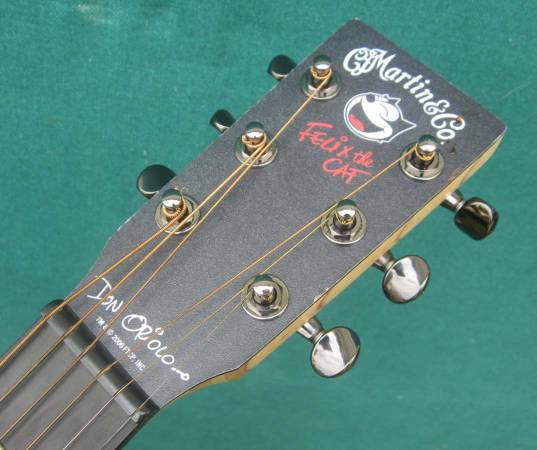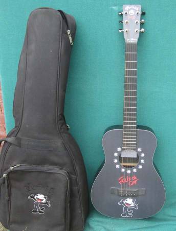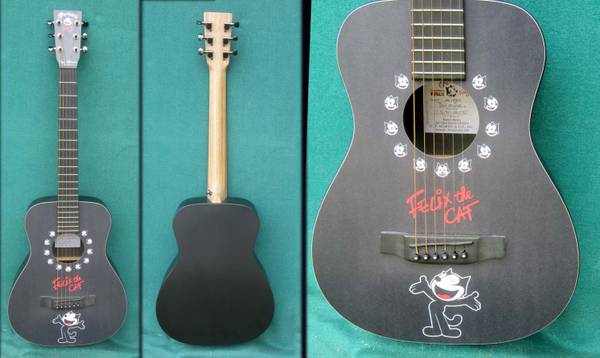 Limited production CF Martin Felix limited edition collector series featuring artwork by Don Oriolo. Includes original Felix the Cat custom padded gig bag with Felix embroidery in clean condition....label signed by CF Martin IV and Don Ariolo ..excellent condition – clean with minimal, negligible play wear. Quoting from an online listing for another one like this on Reverb "The size of this instrument may limit it to being viewed as simply a nice travel, couch play or child’s starter guitar. Well it is, but much more. Ed Sheeran has certainly done well bringing Little Martin guitars to the big stage! Martin’s proprietary technology (HPL back & sides, Stratabond neck) not only renders ruggedness, but also greater resilience to environmental conditions which take traditional stringed instruments out of tune. "