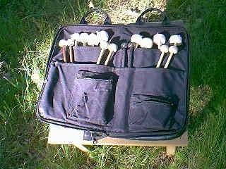 Leather bag with 8 pairs of assorted mallets.