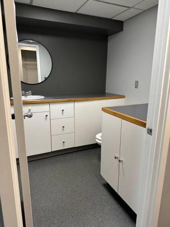 Office space available. Spacious open main area with storage, small kitchen area with built in shelving, and bathroom. All utilities included. Approx. 430 sq feet. Please note that this is a lower...