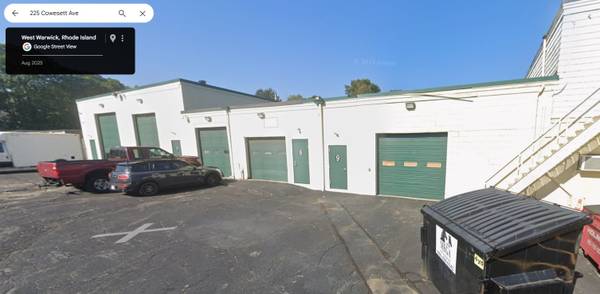1,465 SF double overhead doors 8 x 10 & 10 x 9 plus man door, shared bathroom off hallway - $1950 mo.