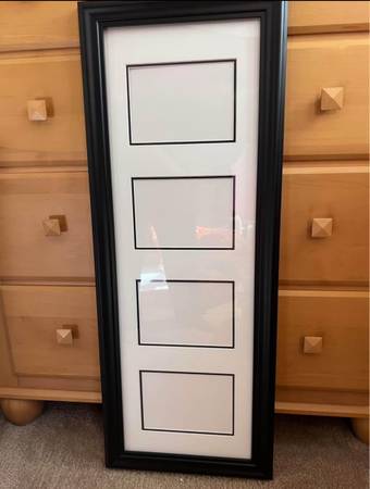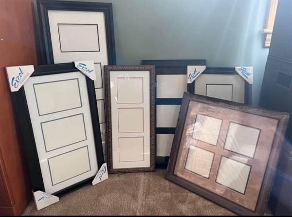 My wife has closed her photography studio so we’ll have lots to sell. Check back often. Set of six multi opening wall frames All have glass, matts and backing #1- brown wood frame/tan and brown...