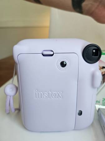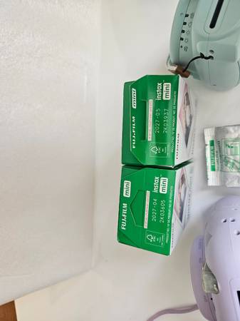 2 Instax mini Polaroid cameras plus 50 sheets of film in packaging. Purple Instax mini 12 is brand new, blue Instax mini 9 is used but works well. Bought for wedding, great idea for a visual guest book or craft project. Serious inquiries only please.