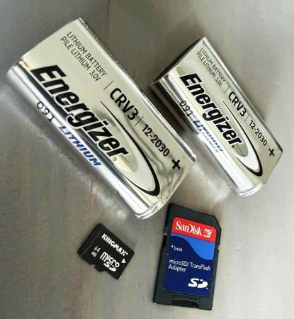 batteries, 64MB MicroSD card with adapter, and Pentax shoulder strap.