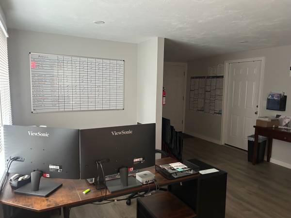 Commercial garage 2700 sq foot building, full garage, bathroom, and office. Also extra storage space. Perfect for roofer, Plumber, electrician, insulation company etc. 2 minutes off the highway.Can park about 7 cars out front.For rent November 1st. Gas furnace for heat. $2700 a month. If the listing is up it is still available.