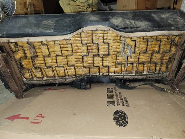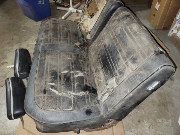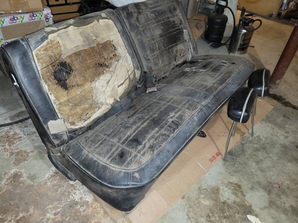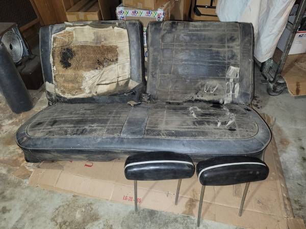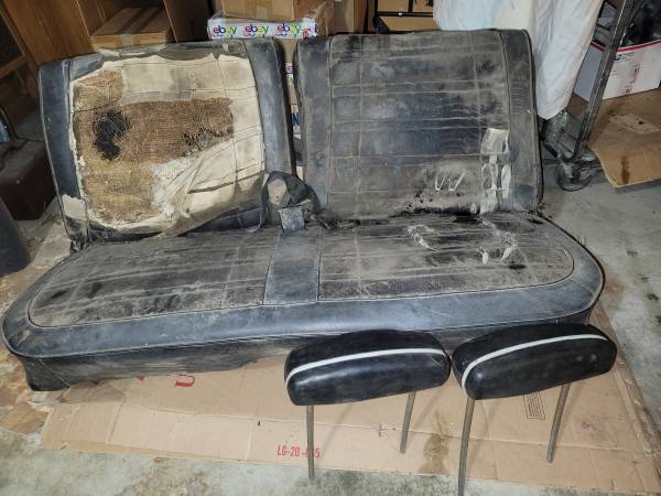 For sale Not trade Plymouth Road Runner Black Front bench seat with headrests fits all 2 door B-Body Plymouths. From a 1969 roadrunner.