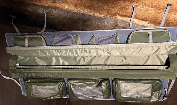 Very lightly used truck seat organizer. See LL Bean website and item: "L.L.Bean Truck Seat Fishing Organizer". This is the same model, retails for $250. This one was on my old Silverado but sold the vehicle and now looking to get rid of this since it doesn't fit in my new vehicle. Useful storage for fly fishing gear but also great for misc. items like ratchet straps, tow straps, first aid kit, jumper cables, small tools, gloves, etc.