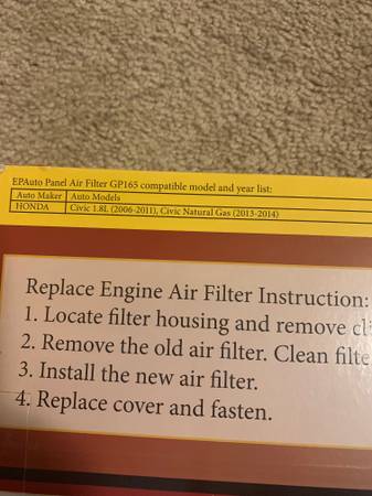 NEW Auto Air Filter Honda Civic 1.8L (2006-2011) CA10165 17220-RNA-A00 - $8 (North Attleboro)