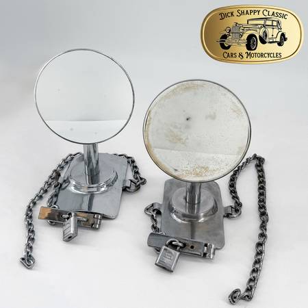 Side-mounted mirrors were strapped to the side-mounted tires that rested behind your front wheel on both sides of your vehicle. They were initially used as an aftermarket accessory in the 1920s and 1930s, becoming a more common car accessory in the 1950s. These Packard mirrors, however, are an original accessory to Packard, making them ahead of their time.