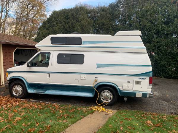 CLEAN 1997 FORD 19 FOOT COACHMEN VAN MOTORHOME . THIS IS THE PERFECT SIZE , EASY TO DRIVE AND YOU CAN PARK IT ANYWHERE .THIS VAN MOTOR HOME IS ON A FORD CHASIS AND HAS 145,000 MILES AND GETS 15 MILES PER GALLON . I JUST DROVE IT 75 MILES AND IT DROVE FINE . I GOT A PO 171 CODE WHEN I DID A DIAGNOSTIC ON . SO I DONT KNOW WHAT THAT ENTAILS AND I AM SELLING IT LIKE IT IS . PLEASE DONT ASK ABOUT THE CODE OR ITS REMEDY IF YOUR NOT FAMILIAR WITH IT NEITHER AM . I . THE COUCH THAT MAKES INTO A BED WAS REMOVED . THERE IS A SLIDING OVERHEAD BUNK BED IN THE FRONT . THE KITCHEN HAS A STOVE , MICROWAVE , REFRIGERATOR AND KITCHEN SINK. THE BATHROOM HAS A SHOWER , COMODE . THE MOTORHOME HAS ICE COLD ENGINE AIR CONDITIONING . WATER HEATER , THERMOSTATICALLY CONTROLLED FURNACE AND ROOF AIR CONDITIONER . NEWER TIRES . DOES NOT HAVE A GENERATOR . CLEAN TITLE . PRICE IS $ 6,950 .CALL 978 807 0174 .