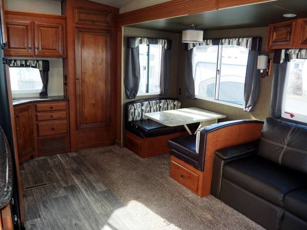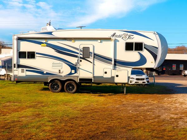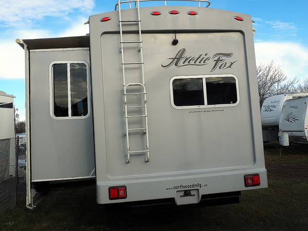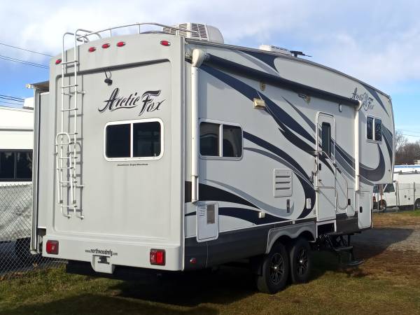 2017 Arctic Fox 27' Fifth Wheel, 4-Season Unit Made By Northwood, Fully Self-Contained, Sleeps 6, Central Heat, A/C, Hot Water. Beautiful Rear Kitchen Design With Double Sink, 3-Burner Stove/Oven, Fridge/Freezer, Microwave, And Booth-Style Dinette That Turns Into A Bed. Large Living Room Area With Power Super Slide, Sleeper Sofa, Flat Screen TV/DVD Stereo, And Ceiling Fan. Front Private Queen-Size Walk-Around Bedroom With Power Slide, Double Closet, And Plenty Of Storage And Drawer Space. Full Bath With Glass-Enclosed Stand-Up Shower, Sink, Toilet And Vanity. This Is A Four-Season Insulated Unit With Heated Tanks, Made To Use Year-Round. Power Awning, Solar Power, Everything Works. No Leaks, Odors, Or Soft Spots. Nice Clean Unit, Must See. Winter Price: $10,995. We Gladly Accept All Major Credit Cards. Your Trade-In Is Always Welcome. For An Appointment Please Call Allen 4Ol-699-l7O7.