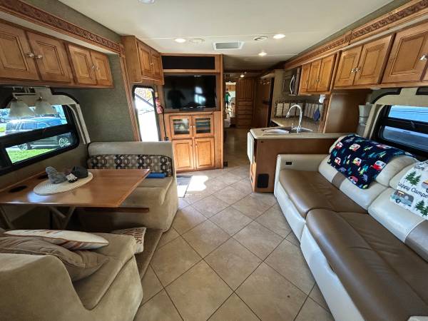 2015 Itasca Suncruiser 35P well maintained with 38,7000 miles and has a gas powered V10 engine. It has 3 slides, 16ft outdoor awning, outdoor tv, automatic leveling jacks, solar on the roof, 50amp service, Cummins generator, smart tv in bedroom, tv in living area, large fridge that runs on electric and propane, washer and dryer, king sized bed with adjustable mattress, the couch in living area turns into a king sized bed bed, I just replaced the water pump, new slide topper over bedroom, new led awning light and I replaced the chassis and house batteries last year. I will also include all towing needs I have the RVI3 breaking system, BlueOx tow bar and I also have attachment that is installed to vehicle for towing.
