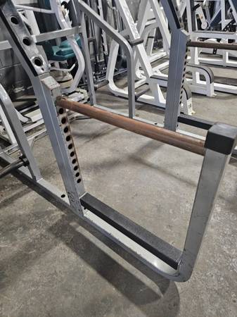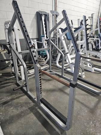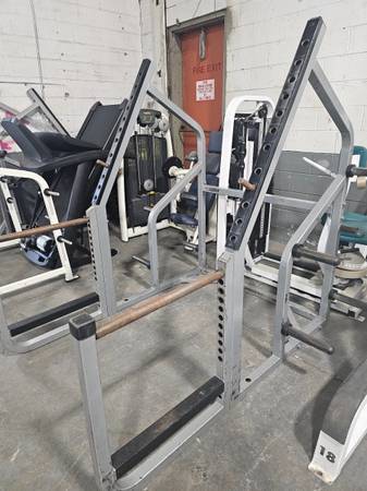 Cybex squat rack with adjustable pins and safety I have 2 in stock. Silver In good shape and heavy duty Pick one up at Big Fitness in Cranston for $300 Local drop off is available
