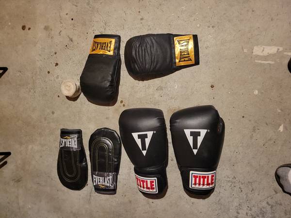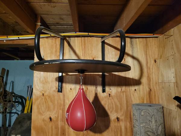 Speed bag setup with boxing and speed bag gloves. Excellent condition.