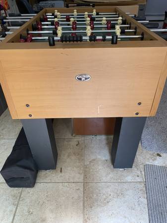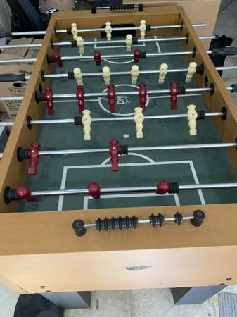 Used foosball table in good condition. Pick up in East Greenwich. 54" L; 46" W with the paddles- the table is 29 1/4" W; 36" H.
