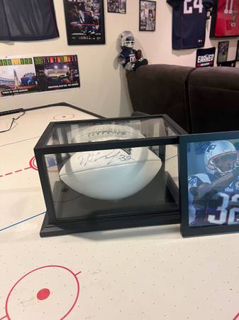 new sign football with case and a sign picture only 75.00