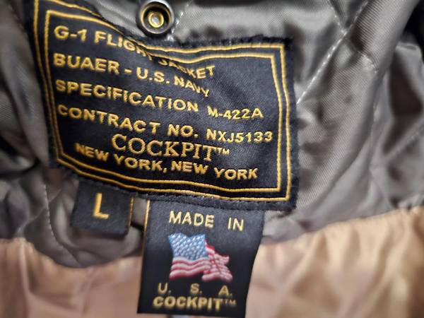 black cockpit usa g1 flight jacket large size made of soft lamb skin almost brand new worn 1 time extremely nice condition.