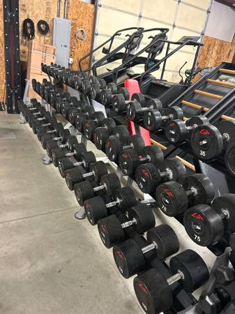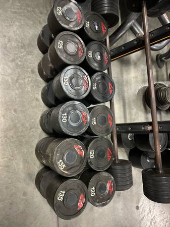 Decent condition , some dumbbells are a bit worn out Rack not included, just dumbbells 4650lb total / 5lb increments , $1 per pound Selling as a set Call or text for more information