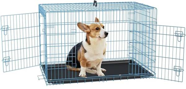 Folding Dog Crate in Box like new I have 2 of these size 24 x 18 x 21 inch Black metal wire Front and Side Door you pick up leave message and phone#