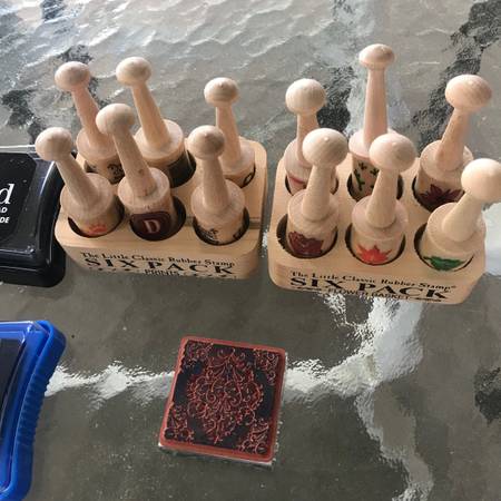 6 pack flower basket 6 pack print basket (horse shoe missing stamp) 2 print pads Block stamp 3/4” Diameter Cash sale/North Attleboro