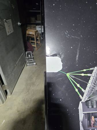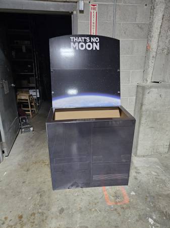 Legos death star display. Cardboard. Used. Great condition except for two tape marks (see pics). Sold as is. No Lego products. Just the display. $75 or best offer. Gonna go fast!