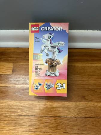 Brand new in box, never been opened. Creative kids aged 7+ can travel to a magical fantasy world to play out fun stories with this Mythical Pegasus (40691) 3 in 1 toy. The super cute winged horse has pose able feet, wings, head and tail, and can stand on all 4 legs – or on its hind legs when on its pedestal. Kids can then choose to rebuild it into a mythical dragon toy with pose able wings and tail, or a mythical bird with its wings spread, ready to fly. Each model can also be displayed on a grand ancient Greek-style pedestal.